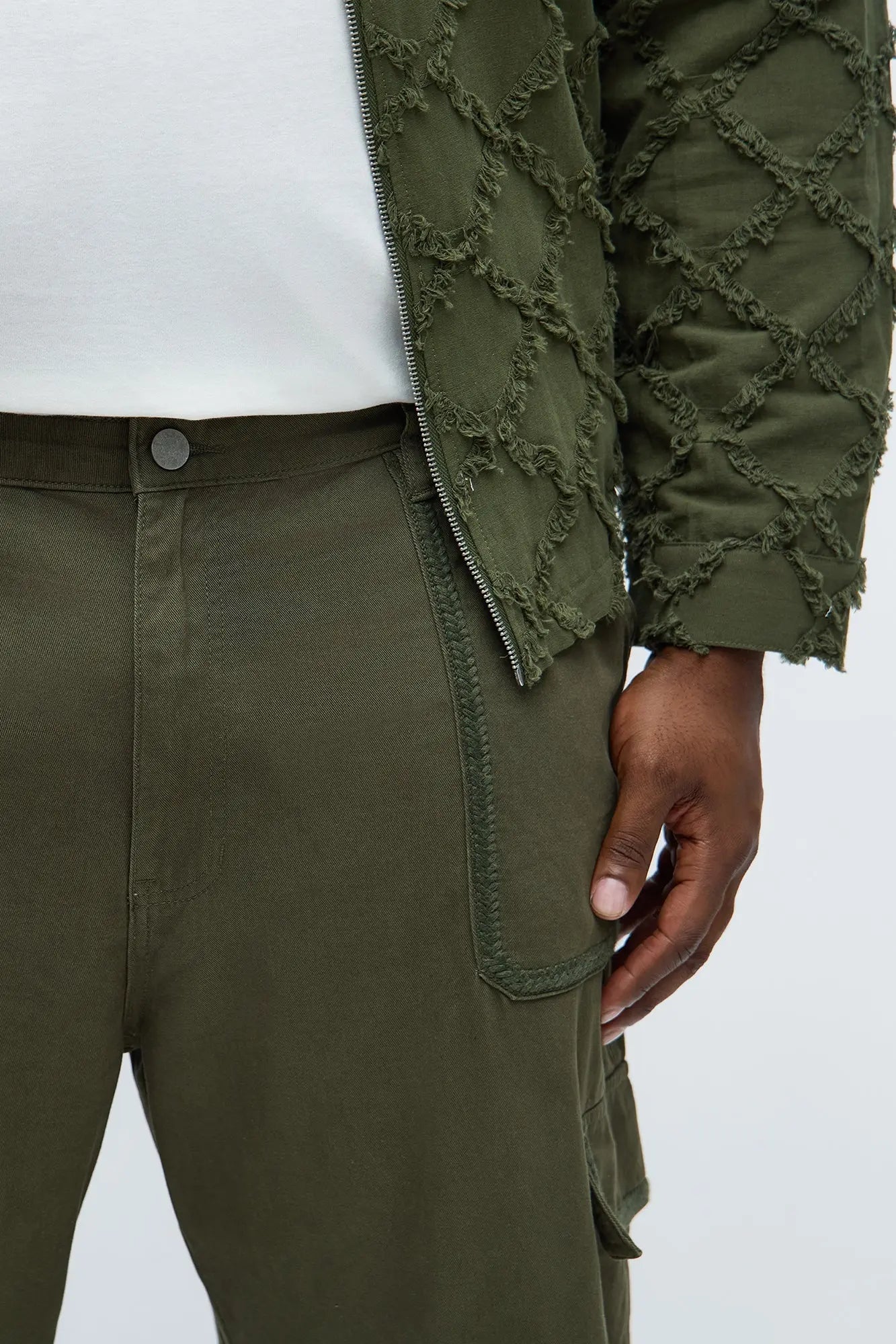 Baggy Chain Stitch Cargo Pant - Olive