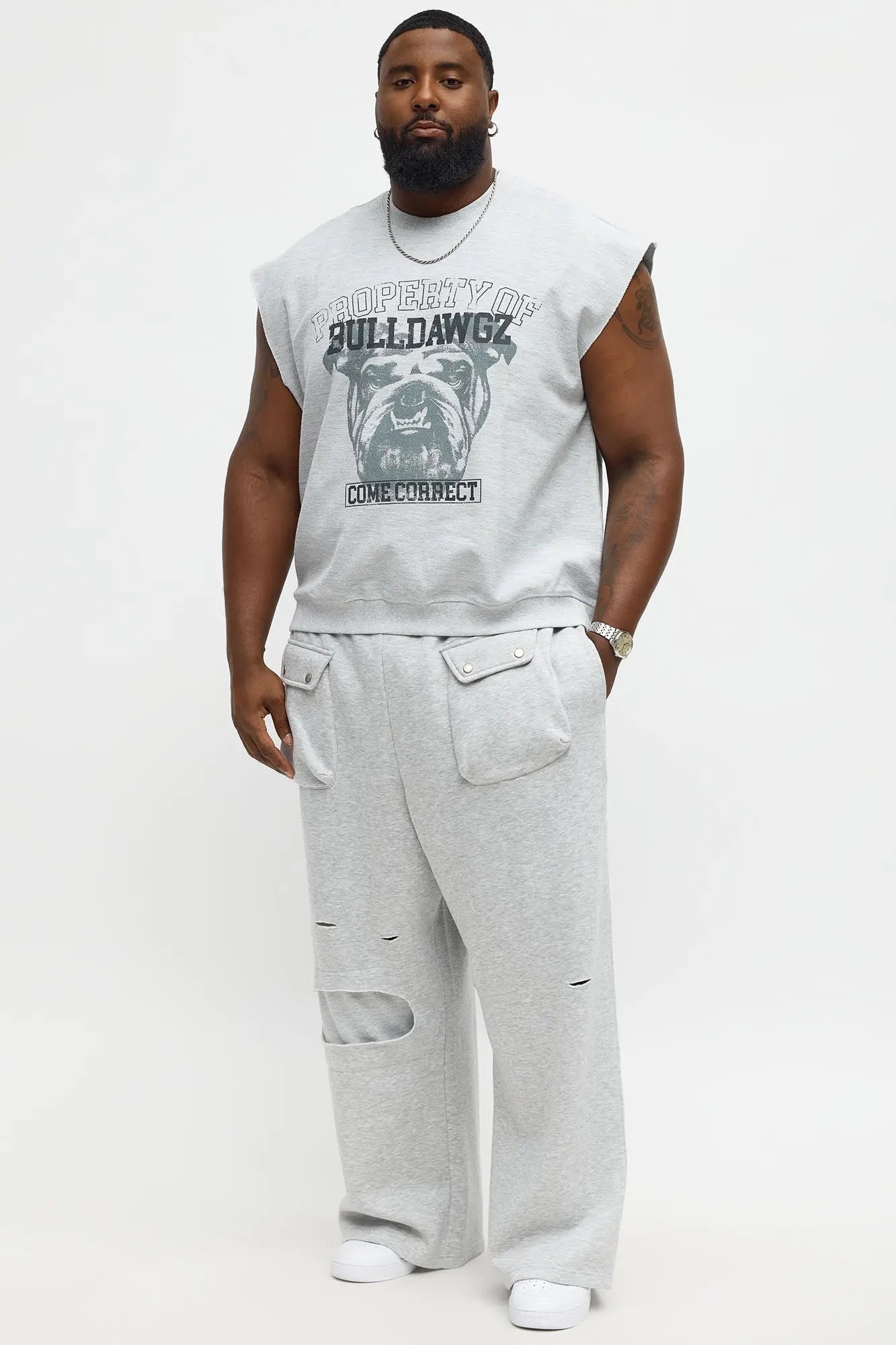 Baggy Snap Pocket Distressed Sweatpants - Heather Grey