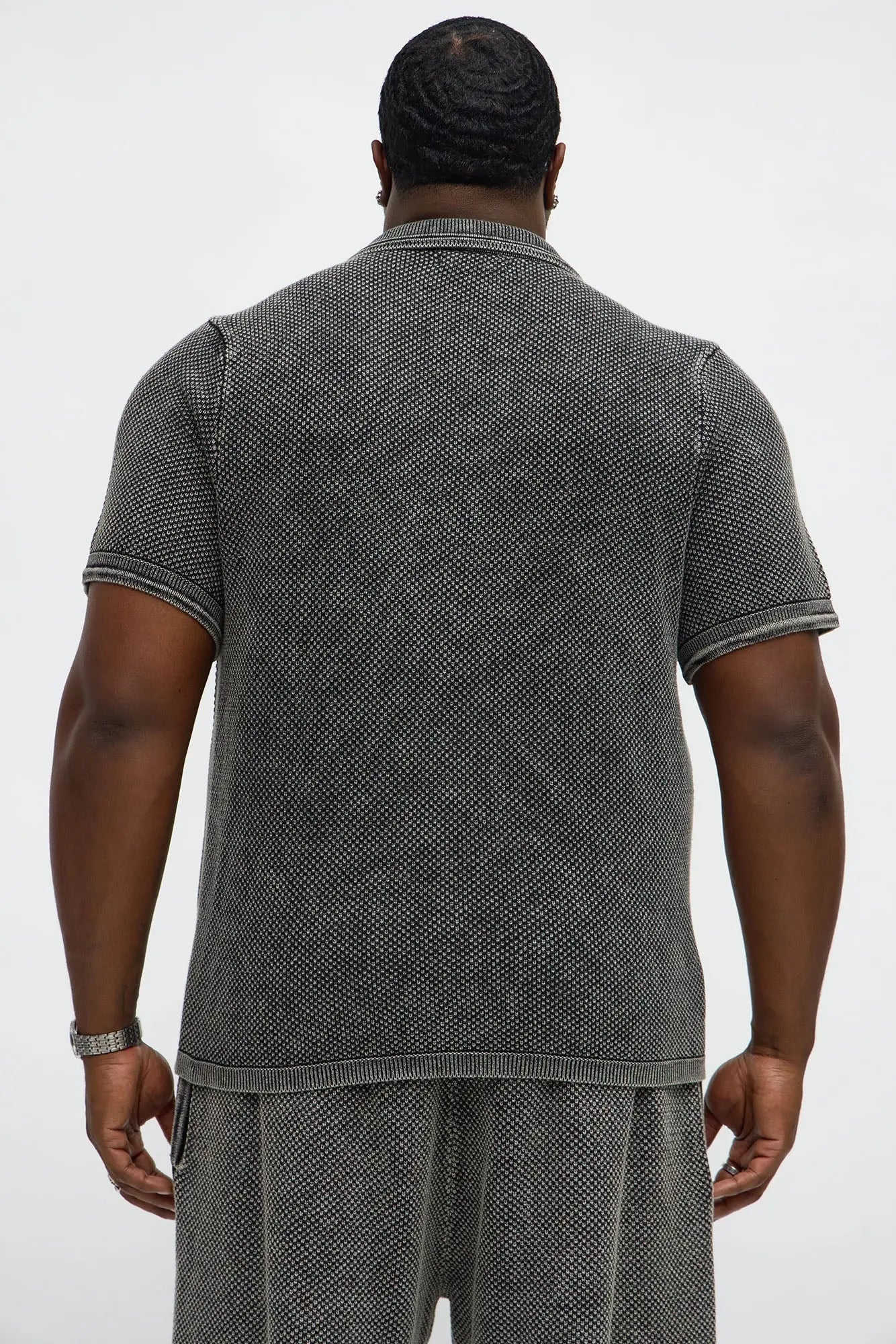 Washed Short Sleeve Button Up Shirt - Black Wash